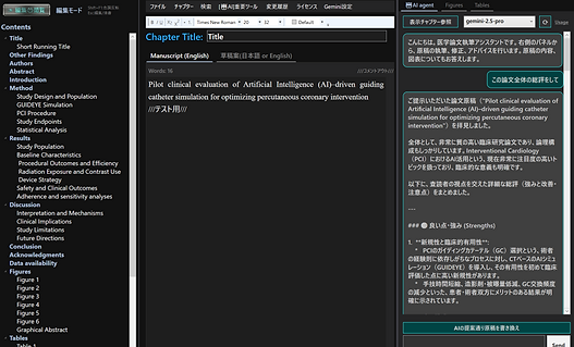 AIは、原稿全体、または選択した章をコンテキストとして保持し、